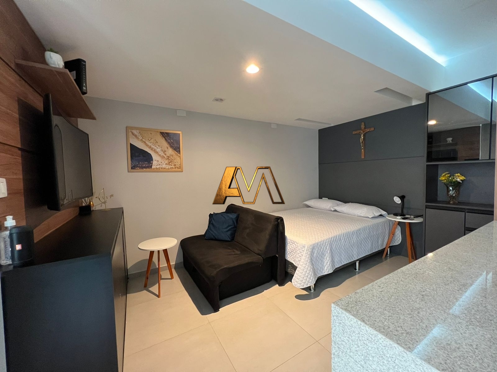 Quarto e sala com 37 m², sala integrada a cozinha, não tem vaga de garagem.