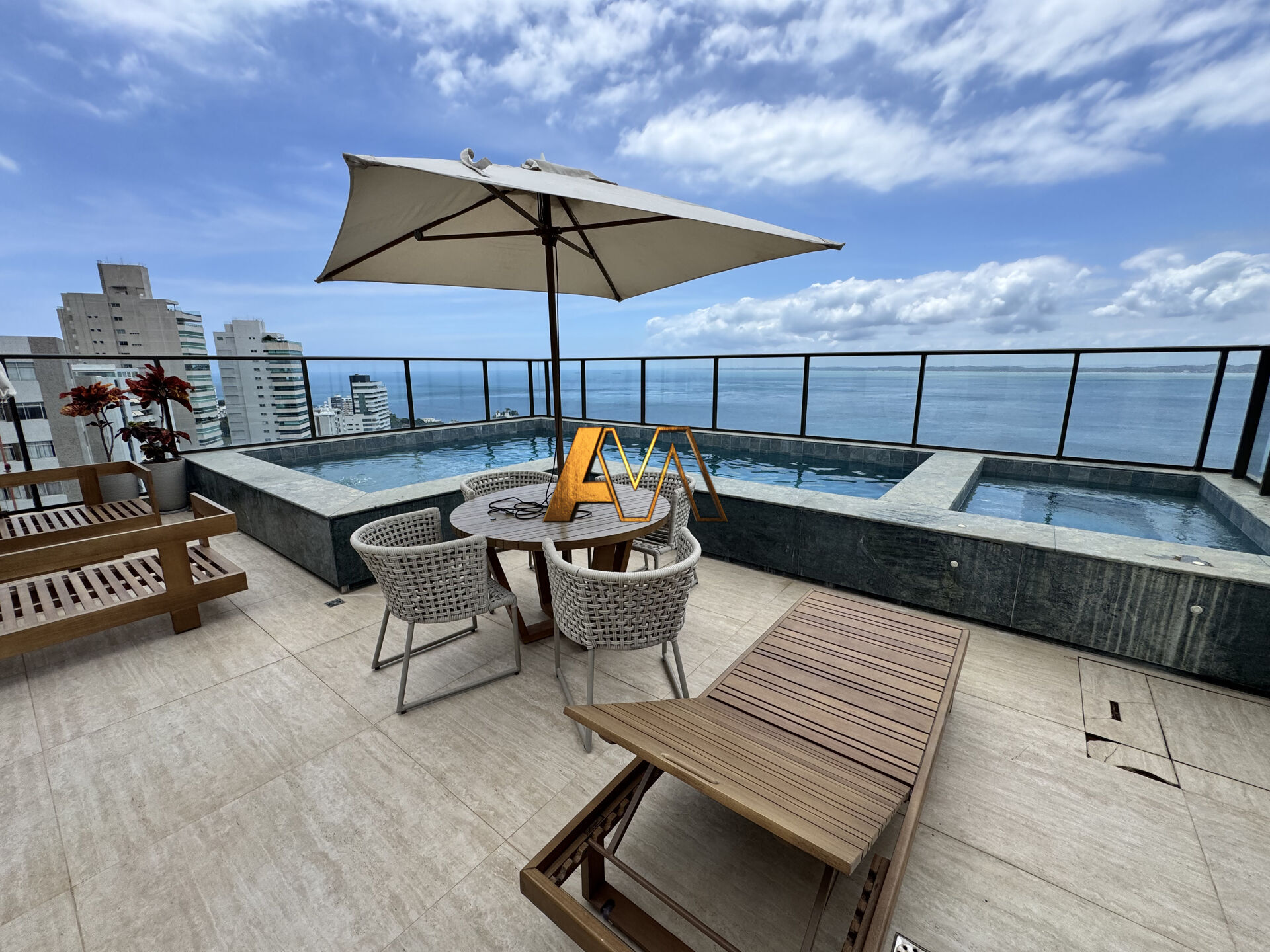 - Varanda com vista mar para a Baía de Todos os Santos.