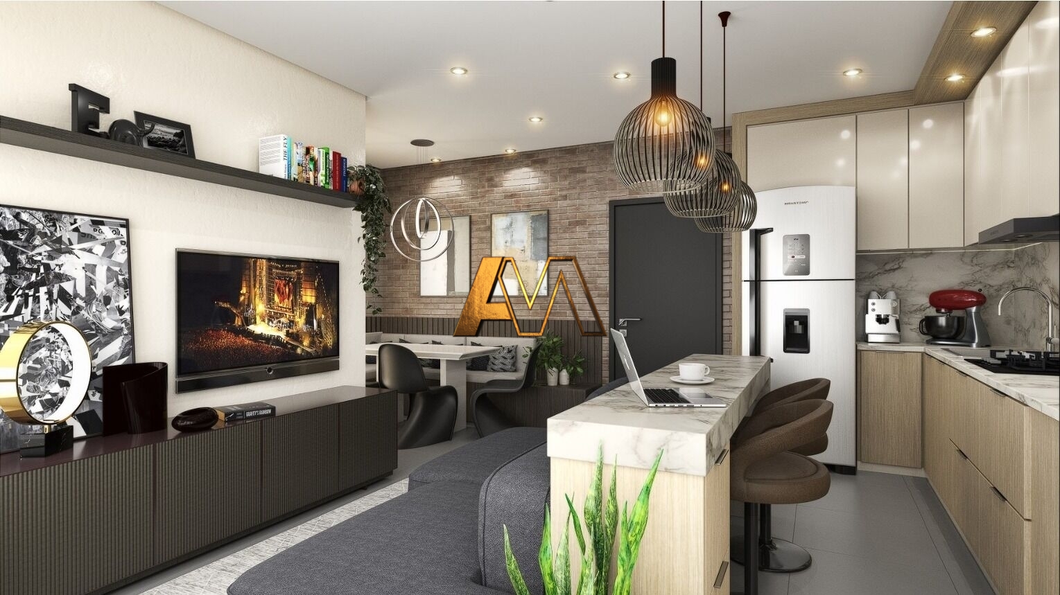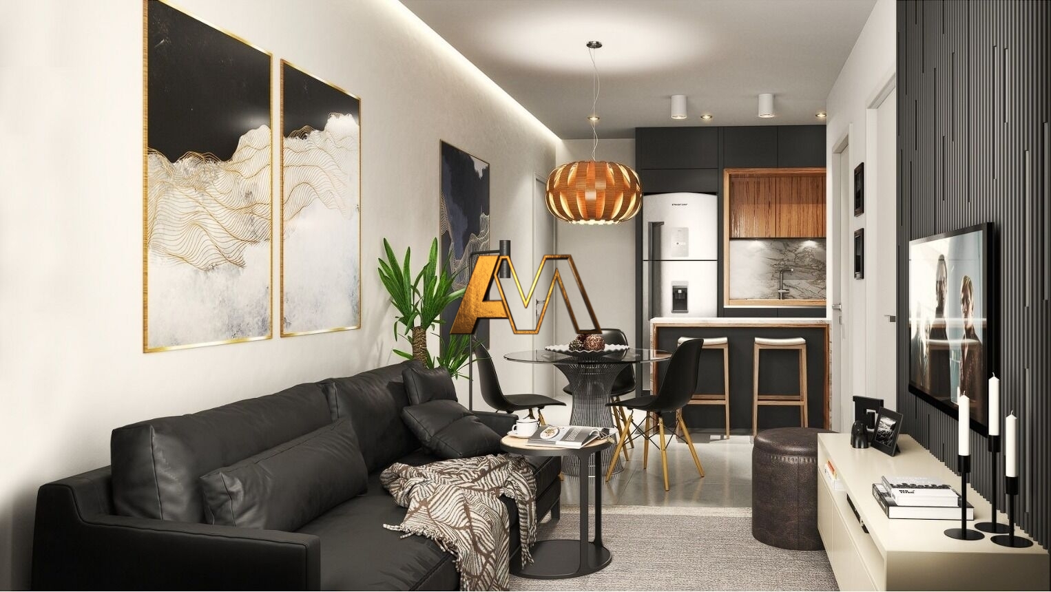 1 Dormitório1 Banheiro1 Vaga1 Sala de TV1 Cozinha1 Lavabo1 Sala de jantar1 Sala de estar1 Área de serviço