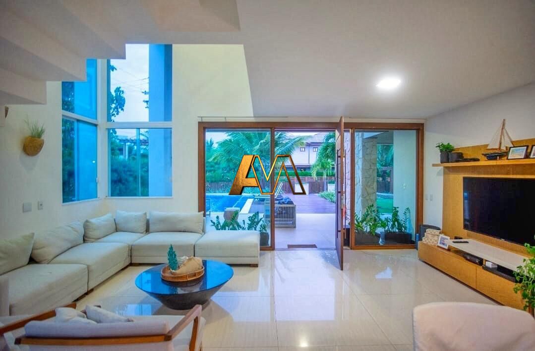 Casa de alto padrão frente mar em Guarajuba, com 572m² de área construída em terreno de 600m². O imóvel possui 5 suítes espaçosas, sala de estar e jantar integradas, cozinha em ilha, lavabo, varanda gourmet com churrasqueira, piscina com deck molhado, jardim, quintal e área de serviço. A casa será vendida porteira fechada, já mobiliada e pronta para morar. Localizada a menos de 200 metros da praia, em condomínio beira-mar com infraestrutura completa de lazer e segurança.