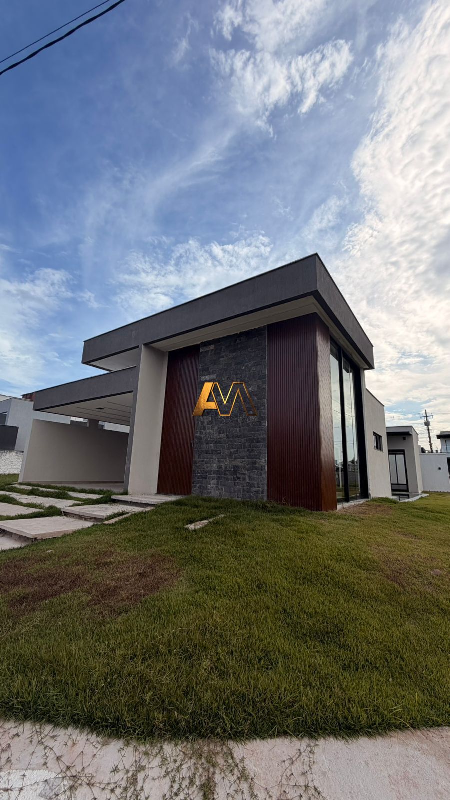 - Design: Sala com pé direito duplo e porta principal de 3,90m.