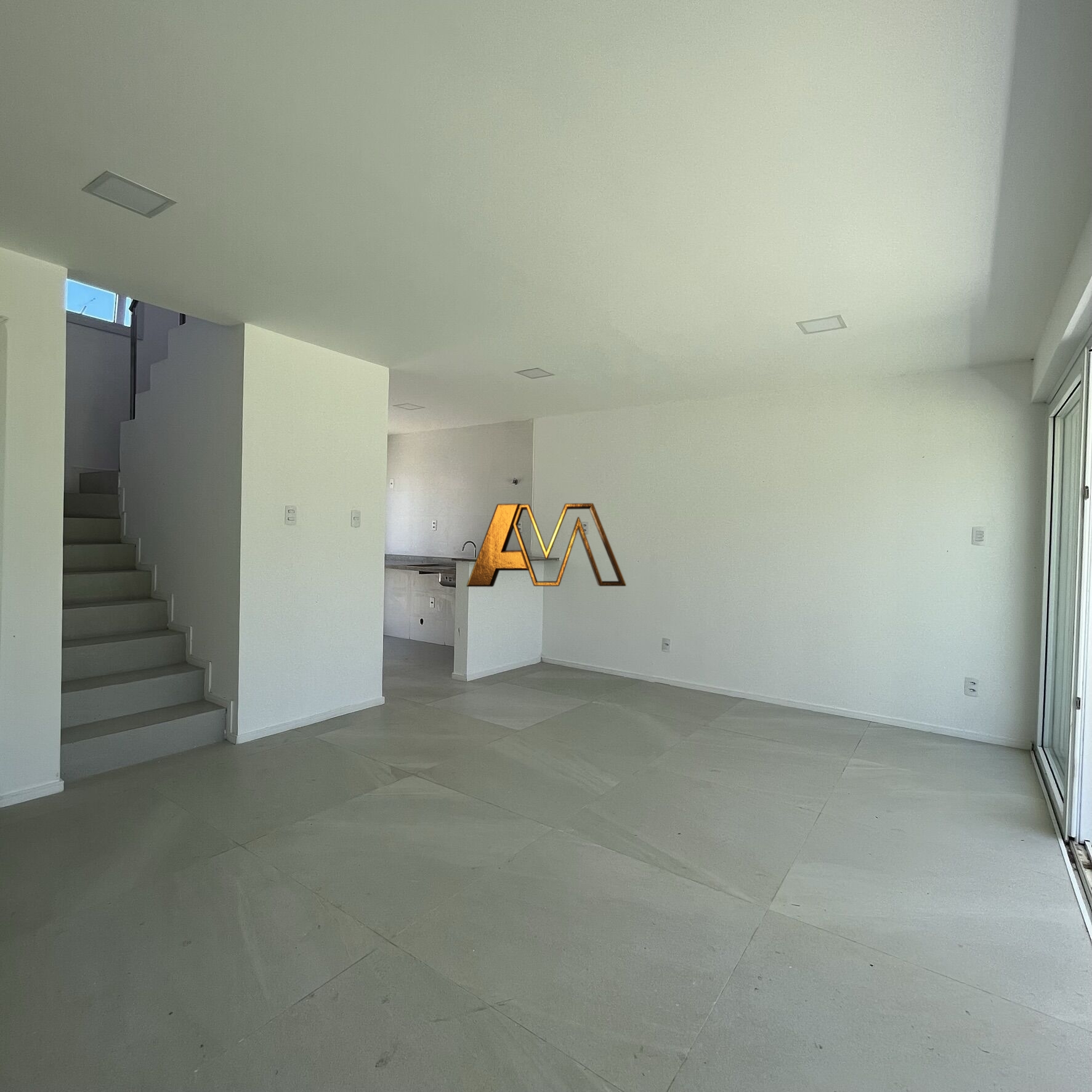 - Sala de estar e TV, cozinha e área de serviço.