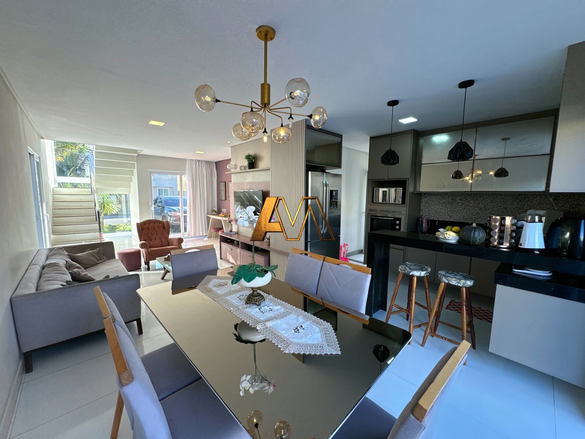 Com 4/4 sendo 3 suítes, suíte master com closet, quartos superiores com varanda, uma suíte no térreo, sala de estar, sala de jantar, sala de TV, cozinha, 4 banheiros, área de serviço, varanda, armários planejados, energia solar, forro de gesso, grama, área gourmet, piscina, 2 vagas de garagem.