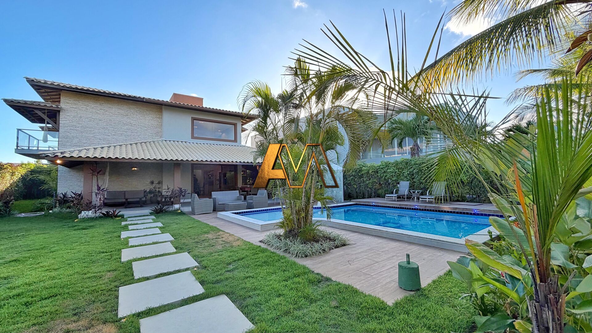 A área externa é um verdadeiro resort particular, contando com um amplo deck, piscina com prainha, paisagismo natural exuberante e uma varanda gourmet totalmente nova com churrasqueira. Com posição nascente, o imóvel recebe brisa constante do mar. Dispõe de impressionantes 5 vagas de garagem.