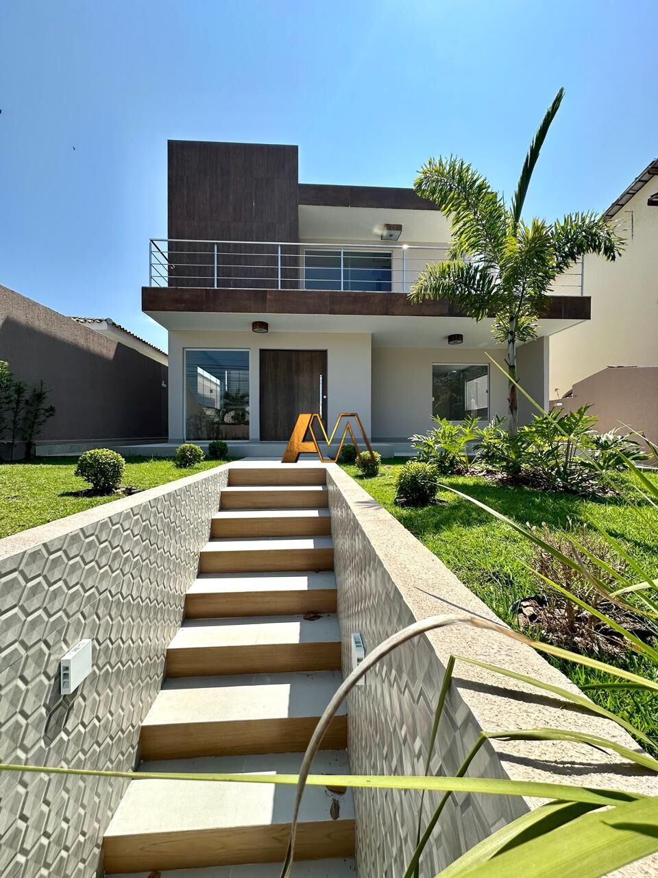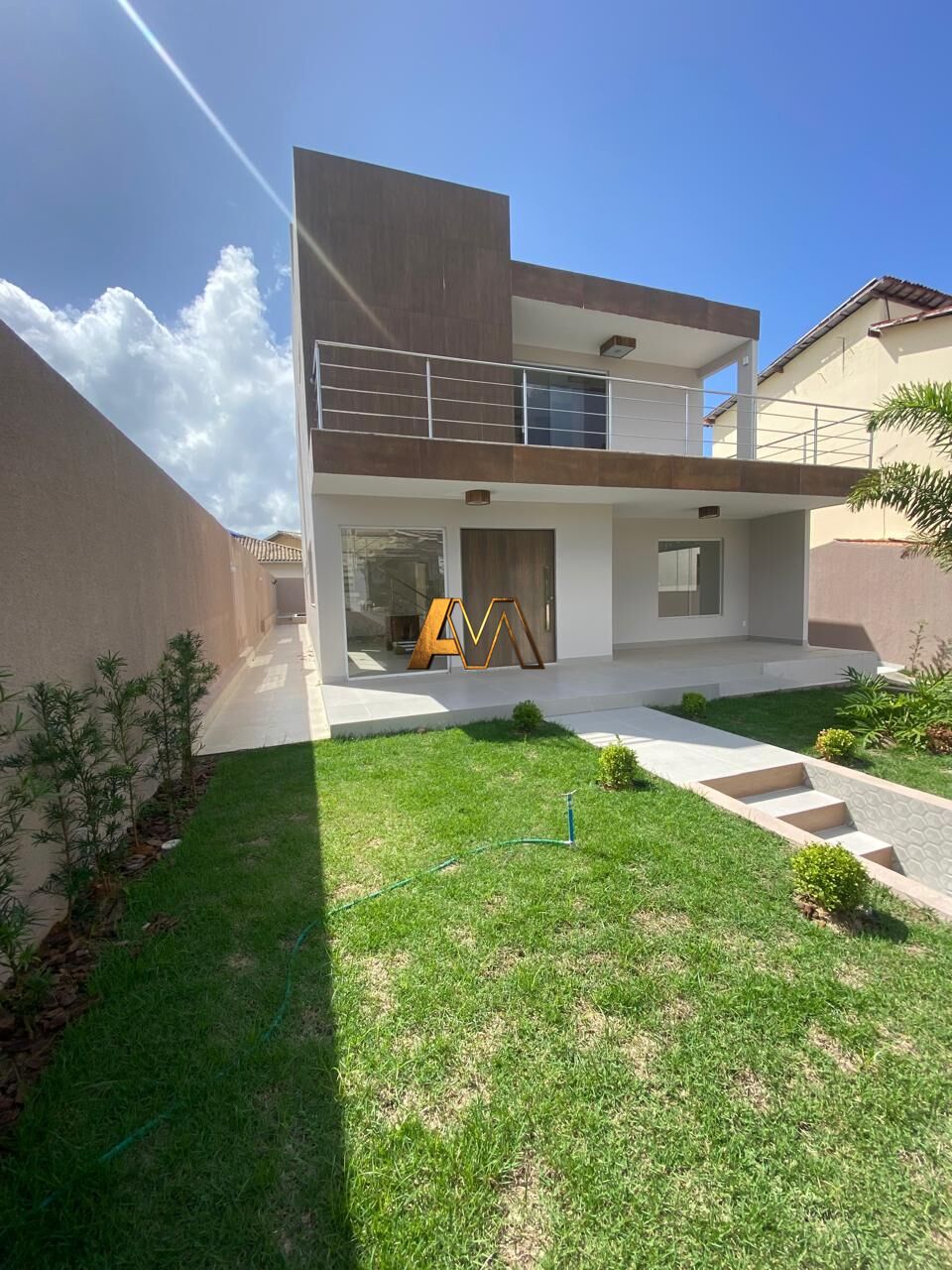 Jardim e garagem para 3 carros