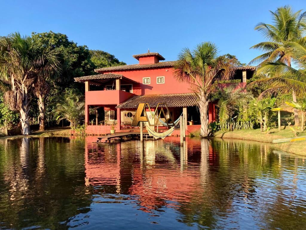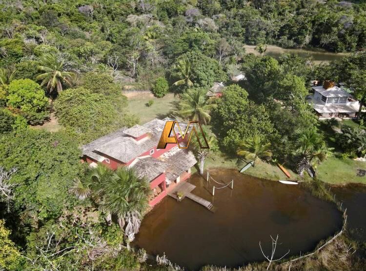 Casa com 450 m² área construída, 2.300 m² área total, 4 suítes, 2 pavimentos: churrasqueira, suítes, sala, varandas, cozinha americana, área de serviço, banheiro, móveis planejados, jardim, poço artesiano, praia privativa, píer, internet.