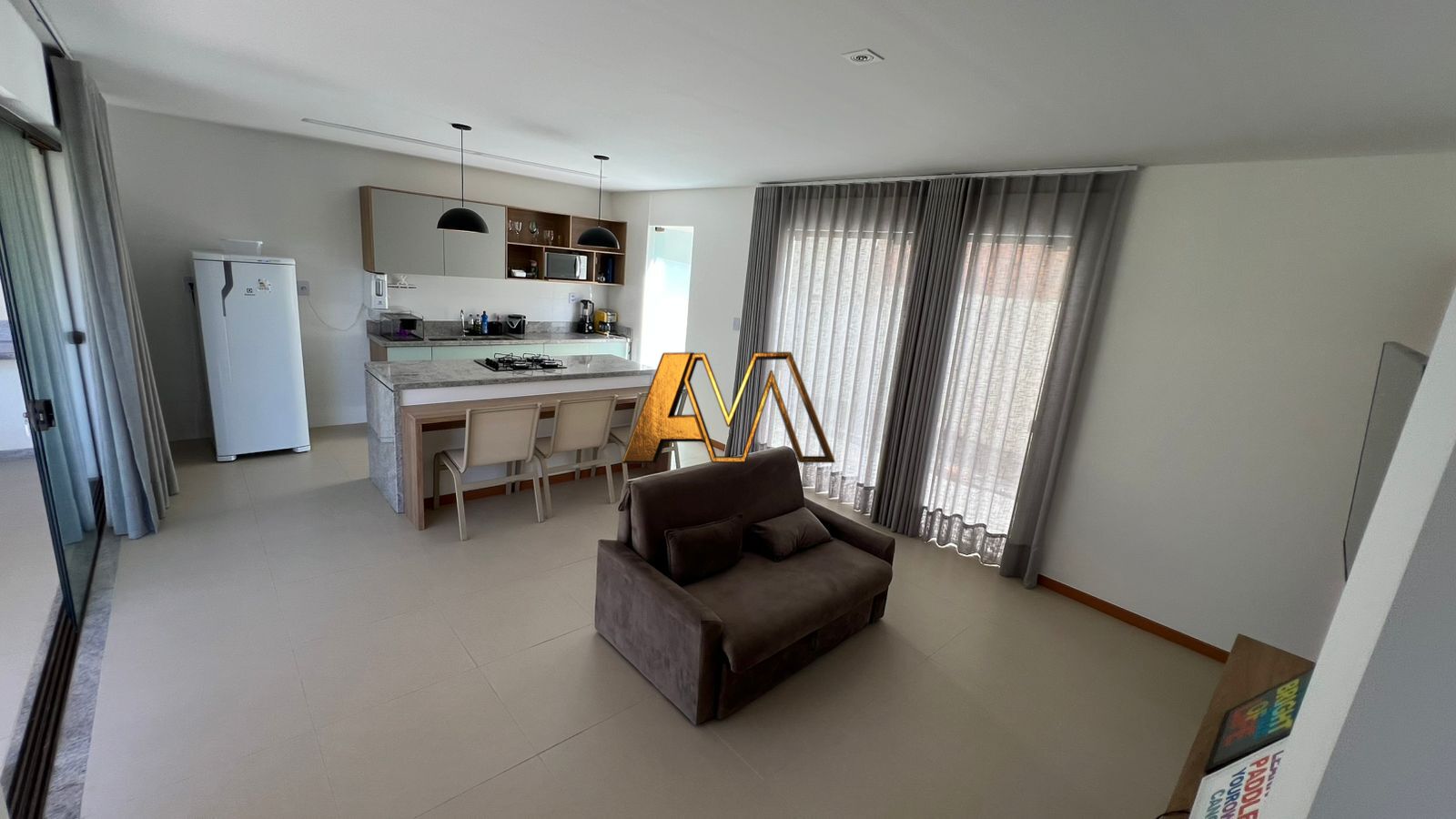- Mobiliado: Imóvel entregue com móveis, ilha e cooktop.