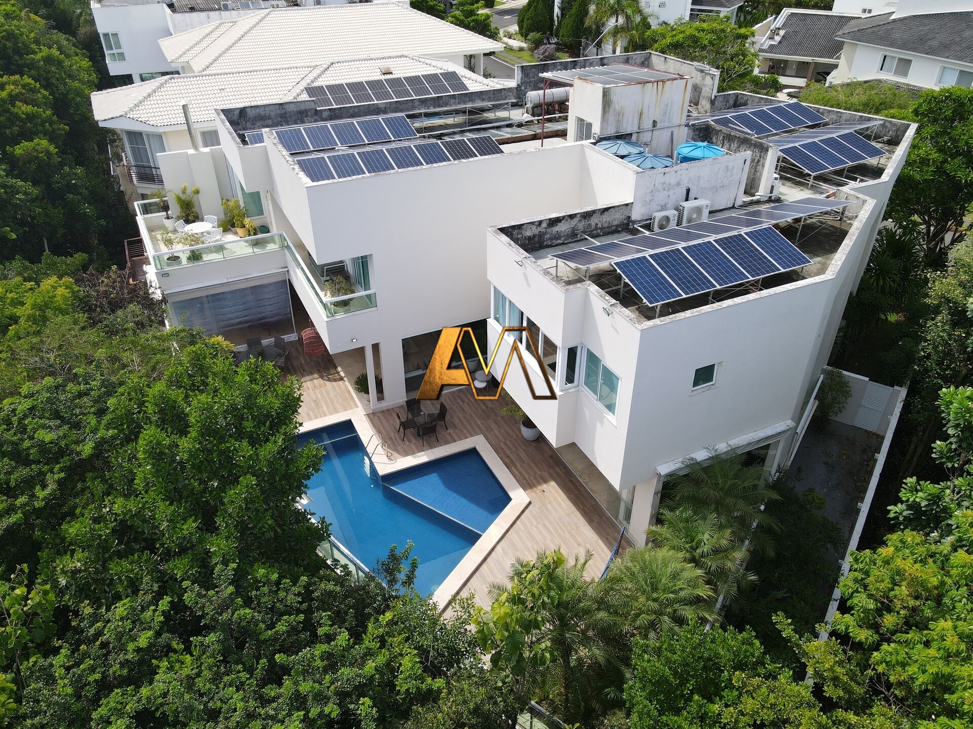 Casa com 1.650 m², de terreno e 964m² de área construída, 6 suítes sendo, 2 suítes master, ventilada, sala intima climatizada , 2 cozinhas completas, cabinete, irrigação automatizada, energia solar , sistema de poço artesiano academia com banheiro, semi-mobiliado, 9 vagas de garagem.